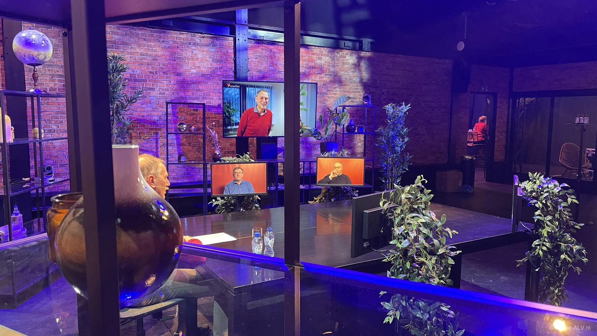 Voorzitter en moderatoren sturen livestream, vragen, aanwezigheid en stemrondes vanuit dezelfde omgeving aan.